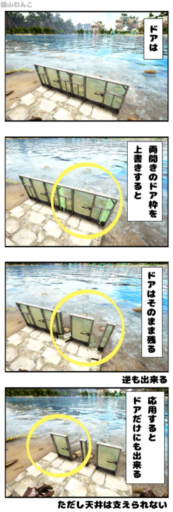 (ドアだけだと天井支えられないので見えにくいけど一応ドア枠も使ってます)