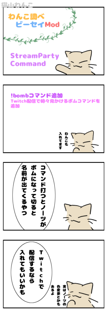 Twitch配信で使えるコマンド追加するMod。