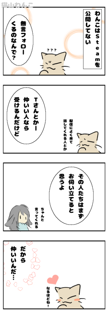 ちなみに公開してるわけではないので無言フレ申請は基本スルーです。