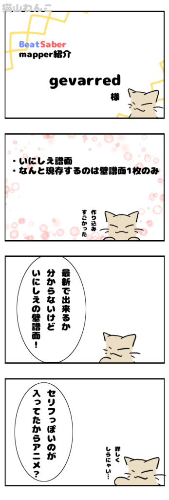 【Mapper紹介】gevarred様 スポンサーリンク Mapper紹介 2026.01.21 ※情報は記載当時のものです※いにしえ譜面のMapper様!(๑•̀ㅂ•́)و✧現存するのは壁譜面1枚のみなので壁譜面好きな人に!٩(๑òωó๑)۶現在1譜面公開されており、難易度別はこんな感じ。Easy:0 Normal:0 Hard:0 Expert:0 Expert+:1BeatSaverMapper紹介(自薦他薦問わず)の情報はこちらからお願いします! favorite5いいね送信中です×※コメントは最大500文字、5回まで送信できます送信送信中です送信しました!